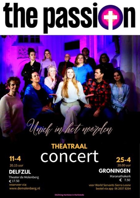 Dit jaar gaan we beide combineren. We gaan De Passion doen op 25 april in De Maranathakerk Groningen, van Lenneplaan 97 en de opbrengst gaat naar Sierra Leone.